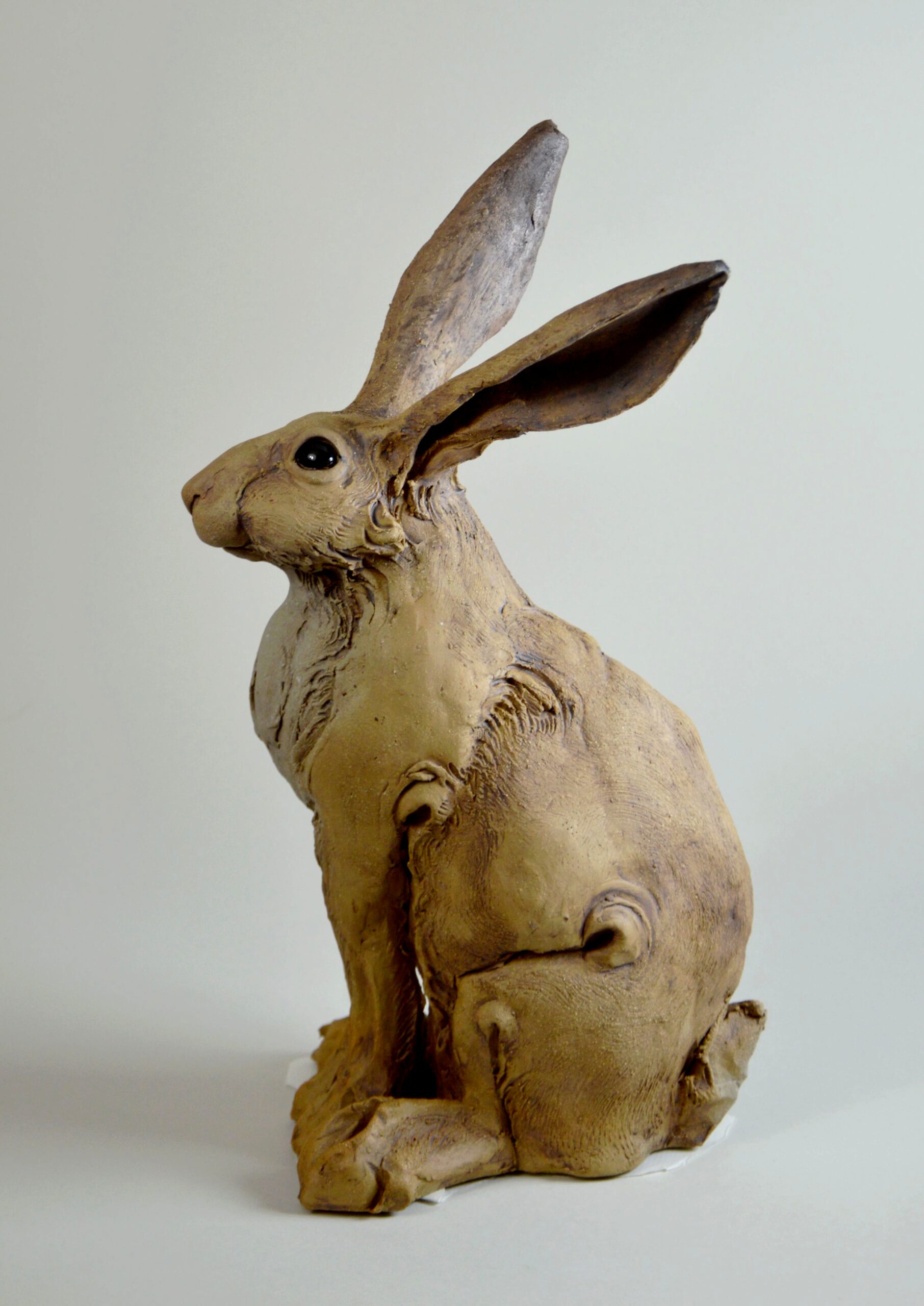 - Sculpture d’un lièvre en céramique. Pièce unique. Certificat d’authenticité